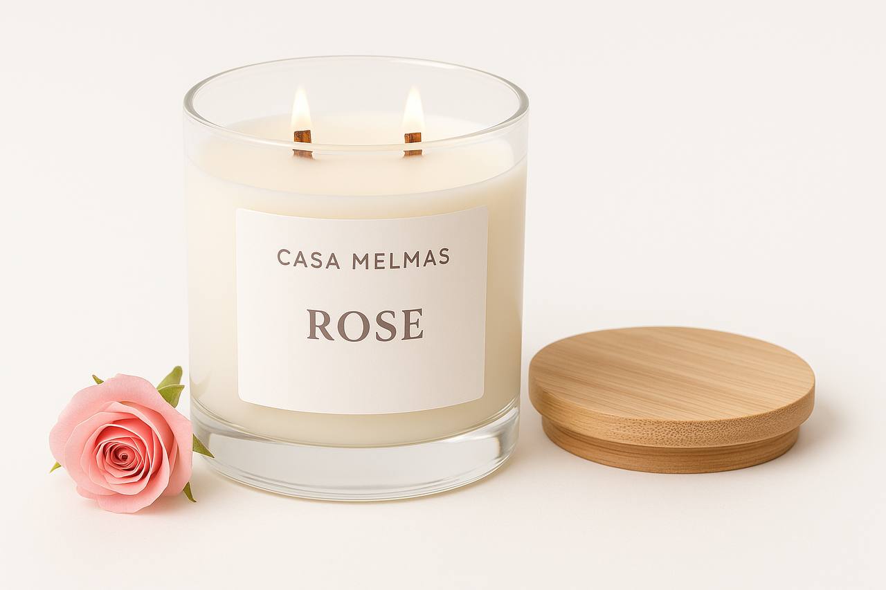 Vela de 100% cera de soja con mecha de madera. Arde de manera uniforme, sin hollín, creando una luz suave y cálida. La mecha de madera produce un sonido crepitante, creando una atmósfera acogedora. El aroma suave de rosa crea una atmósfera romántica y elegante. Complementa perfectamente el servicio y la atmósfera del hogar.